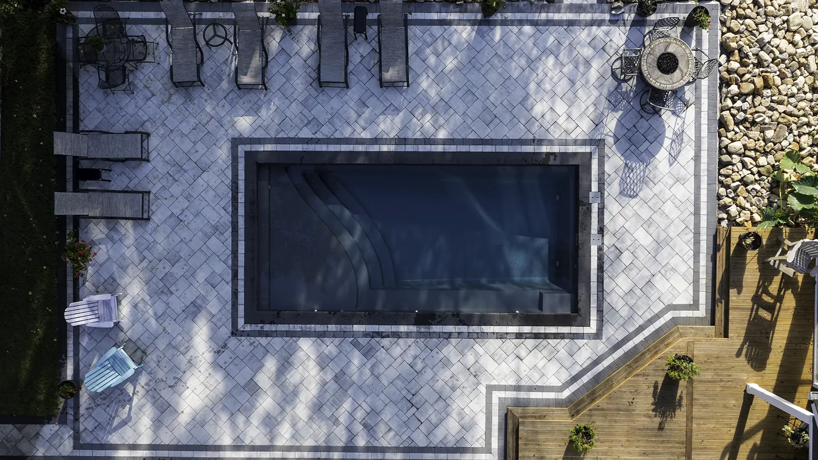 The Bliss elevates your swimming experience with an elegant splash pad made to comfortably welcome up to three lounge seats. Available in three lengths (35’, 30’, and 26’), you can follow your bliss into an exciting suite of outdoor design opportunities to happily complement your lifestyle.